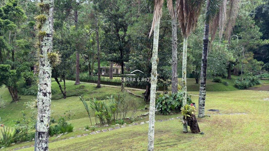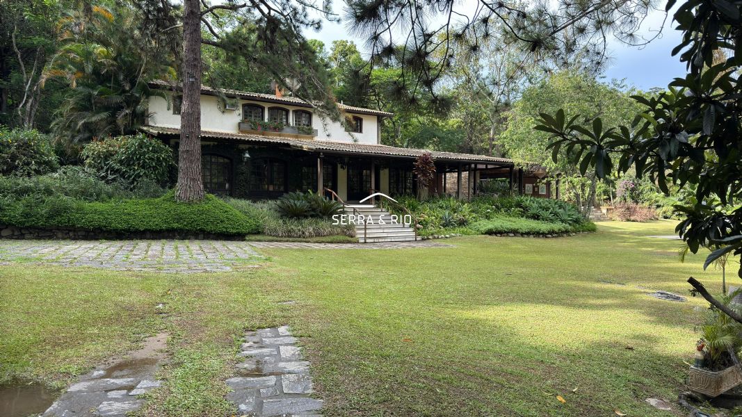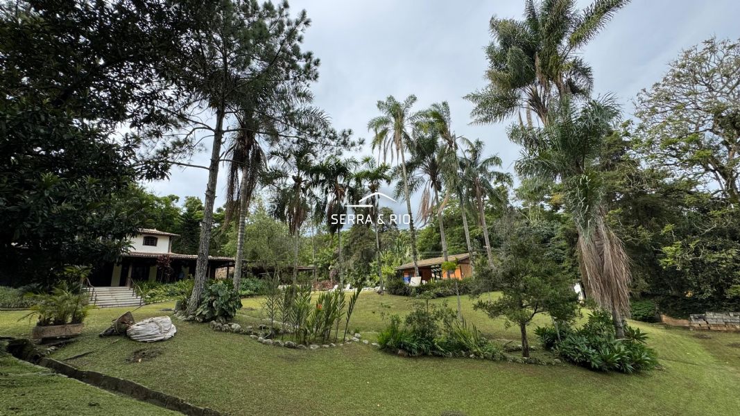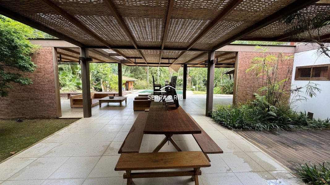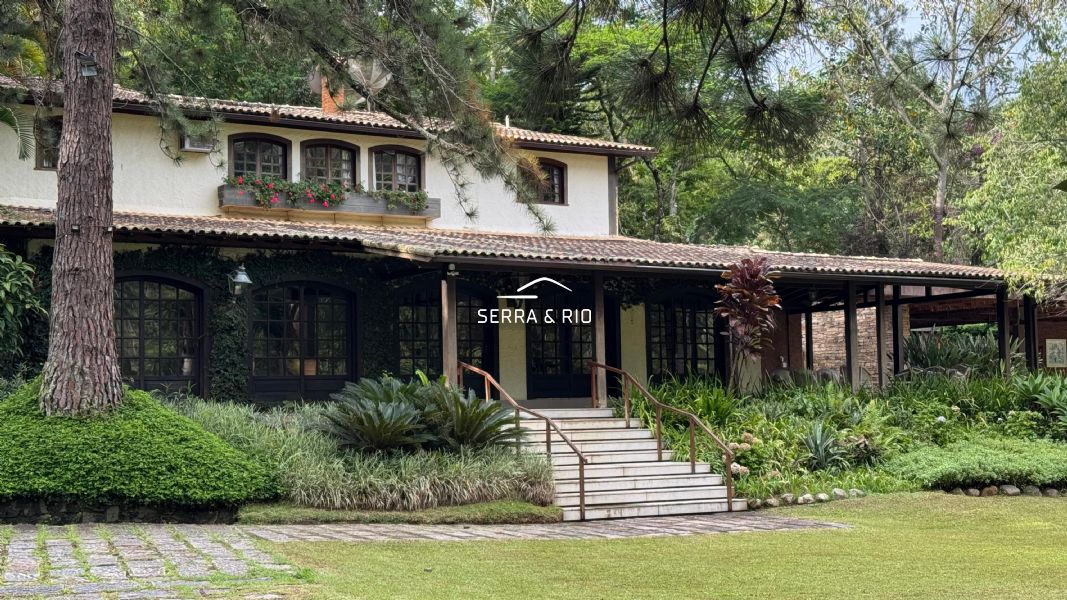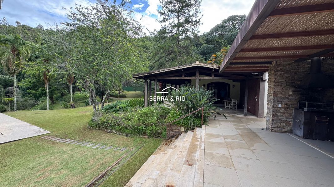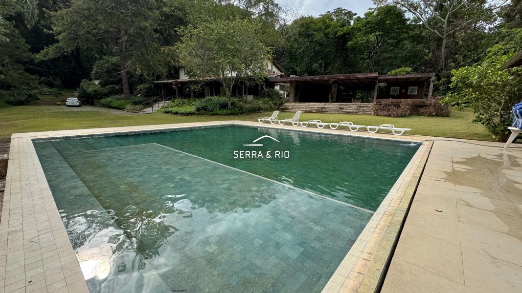 A propriedade possui 17.000 m² de terreno e um casarão imponente dividido em 3 setores, somando 8 quartos, sendo 4 suítes, amplas salas de jantar e estar, varanda e salão de jogos.